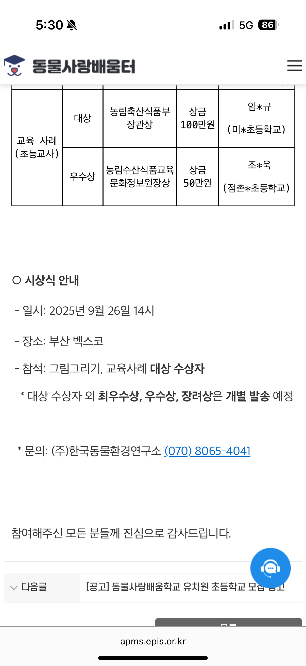 교사로 받는 마지막 상이라고 생각해본다.